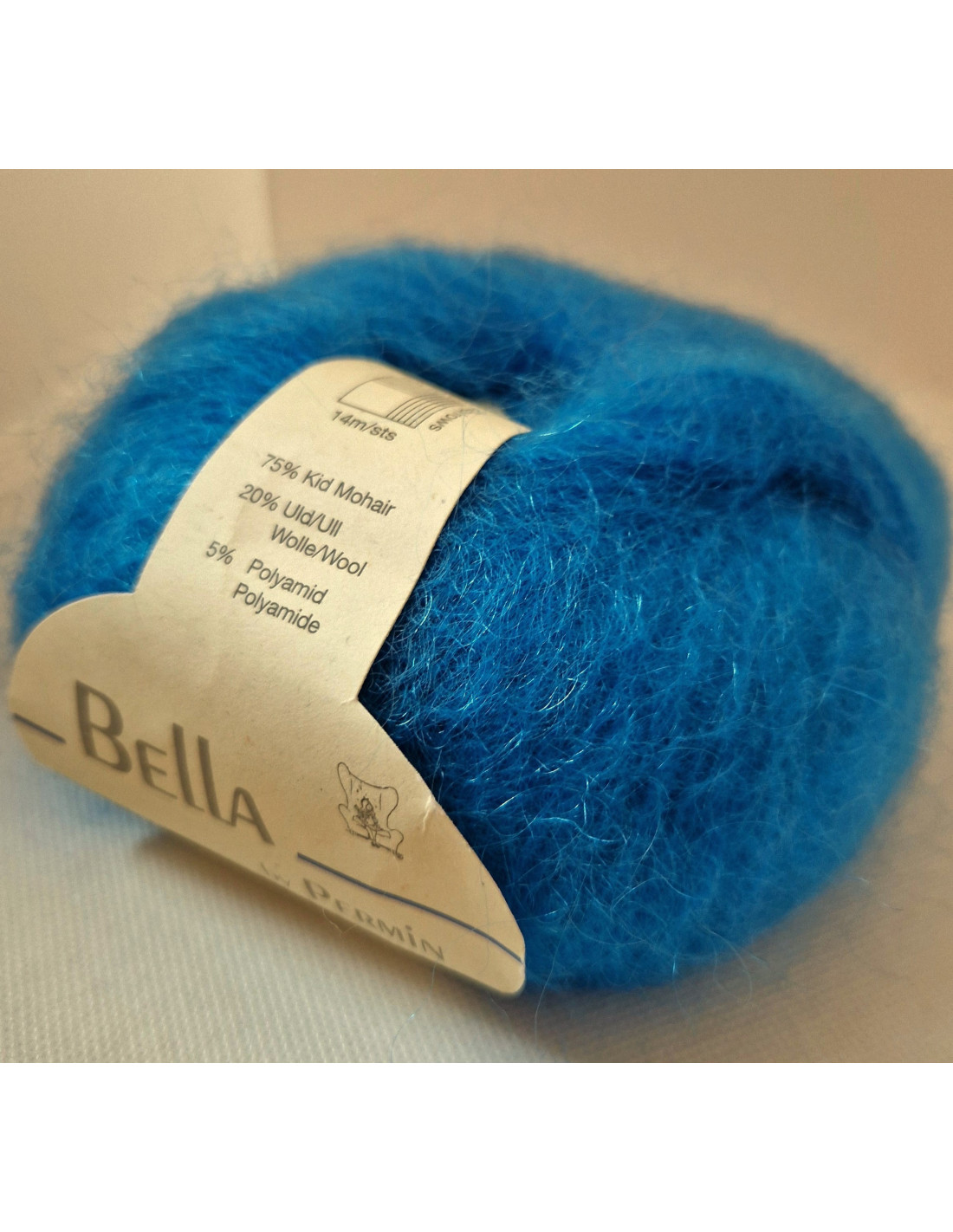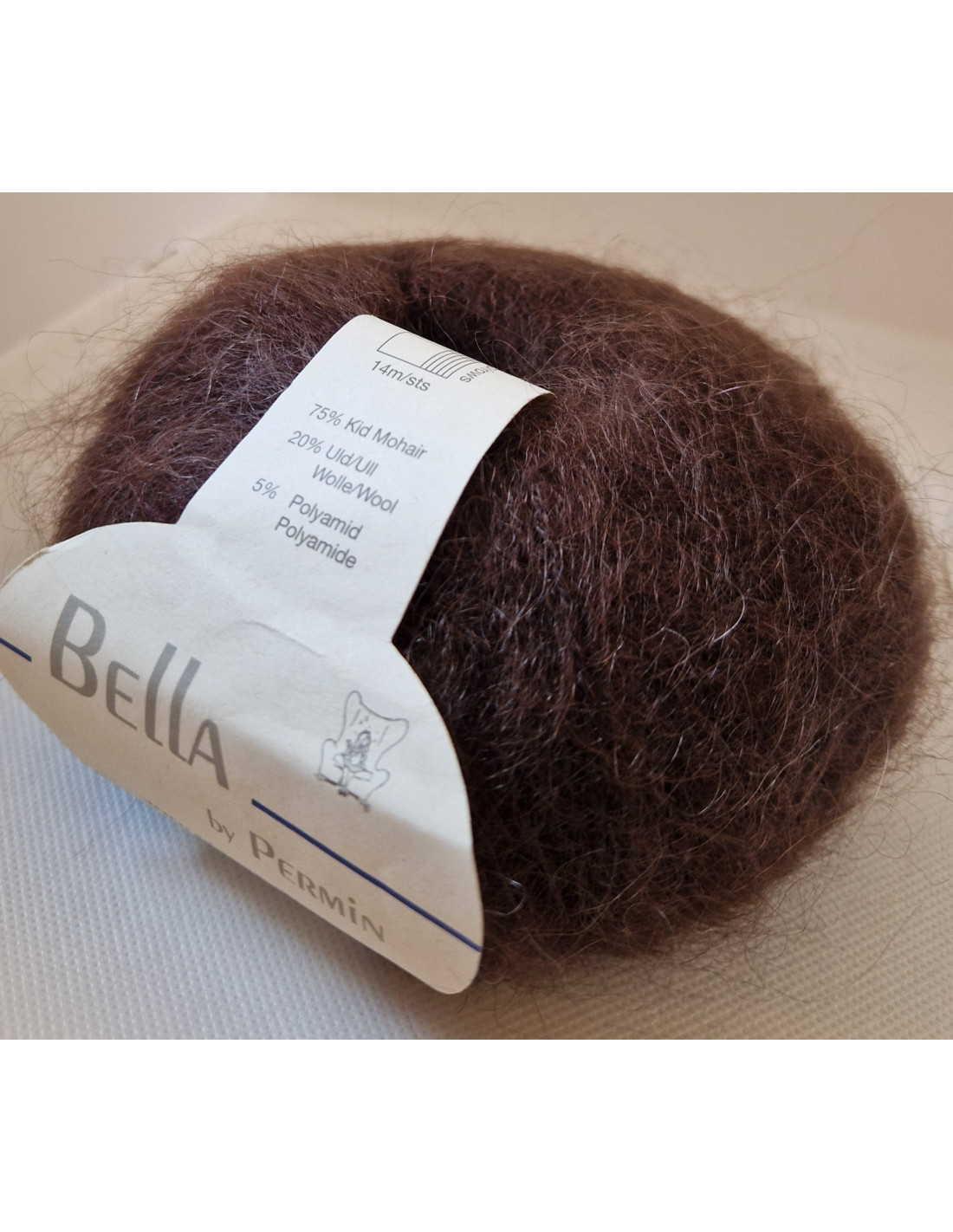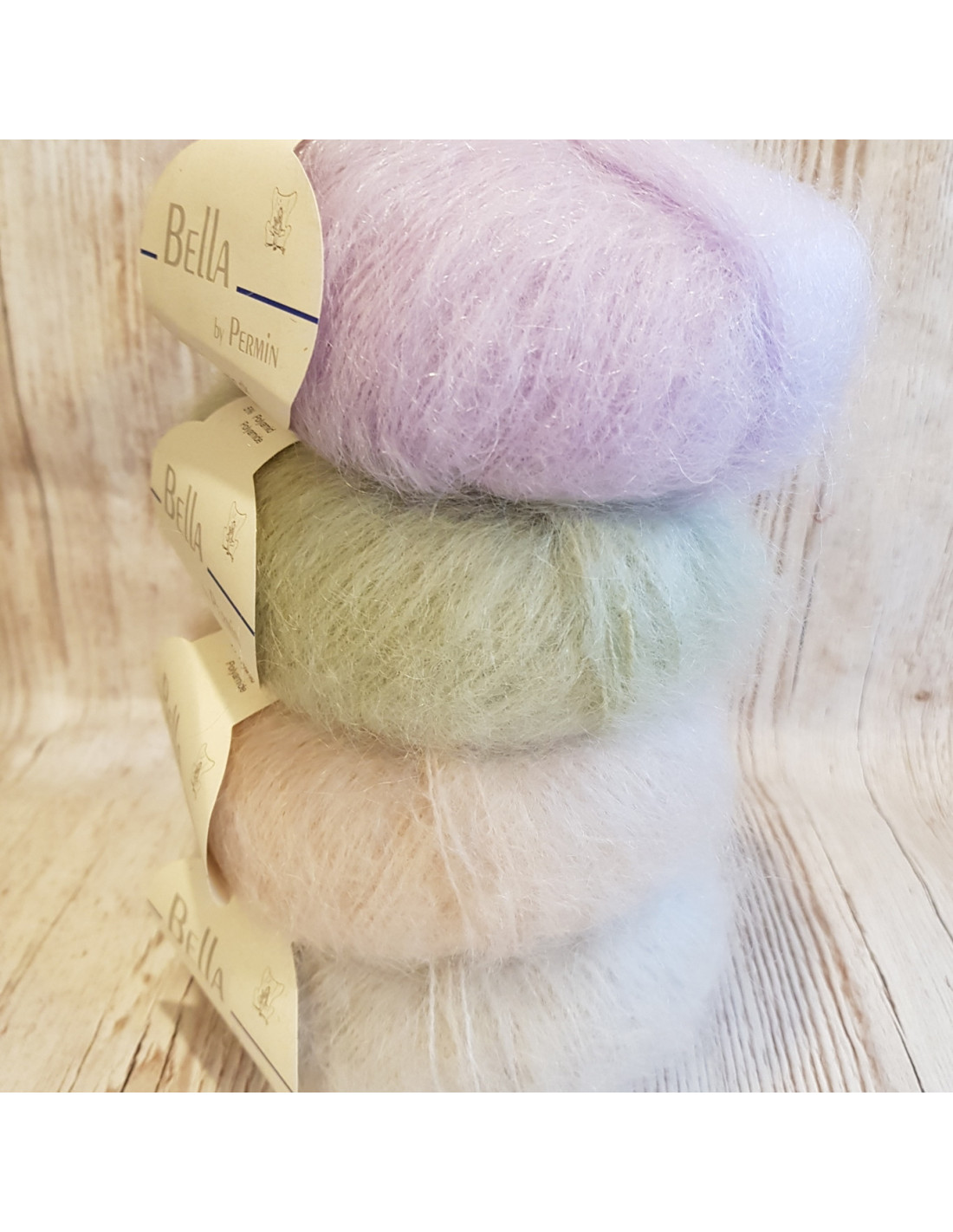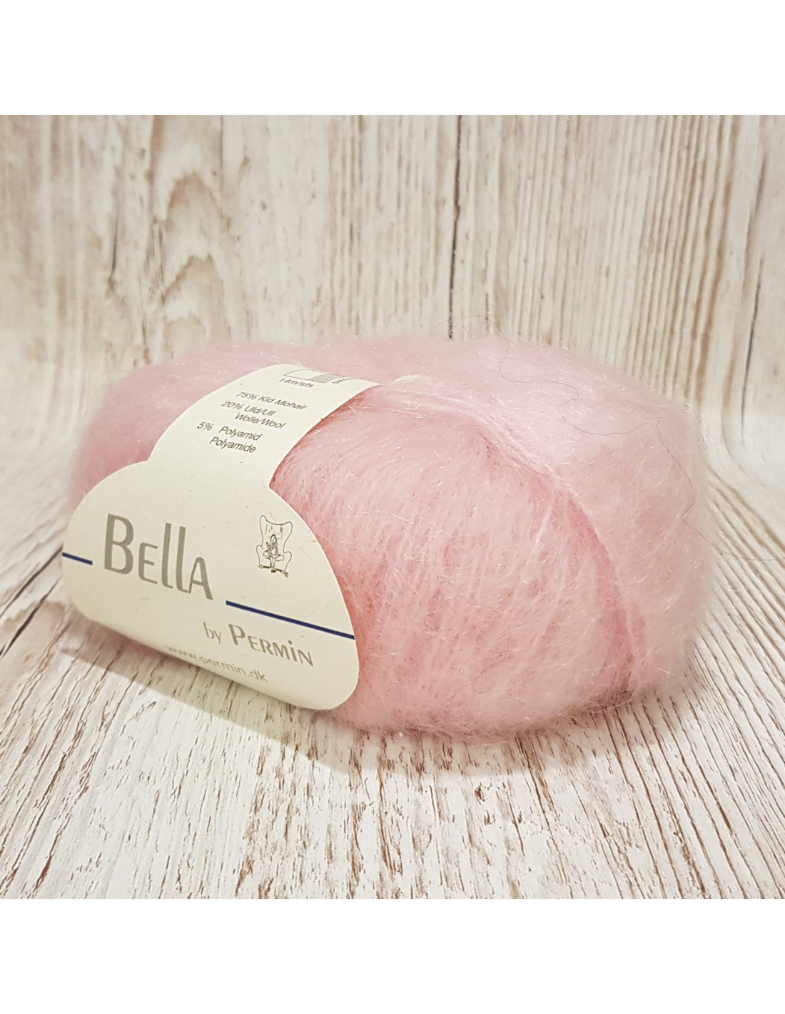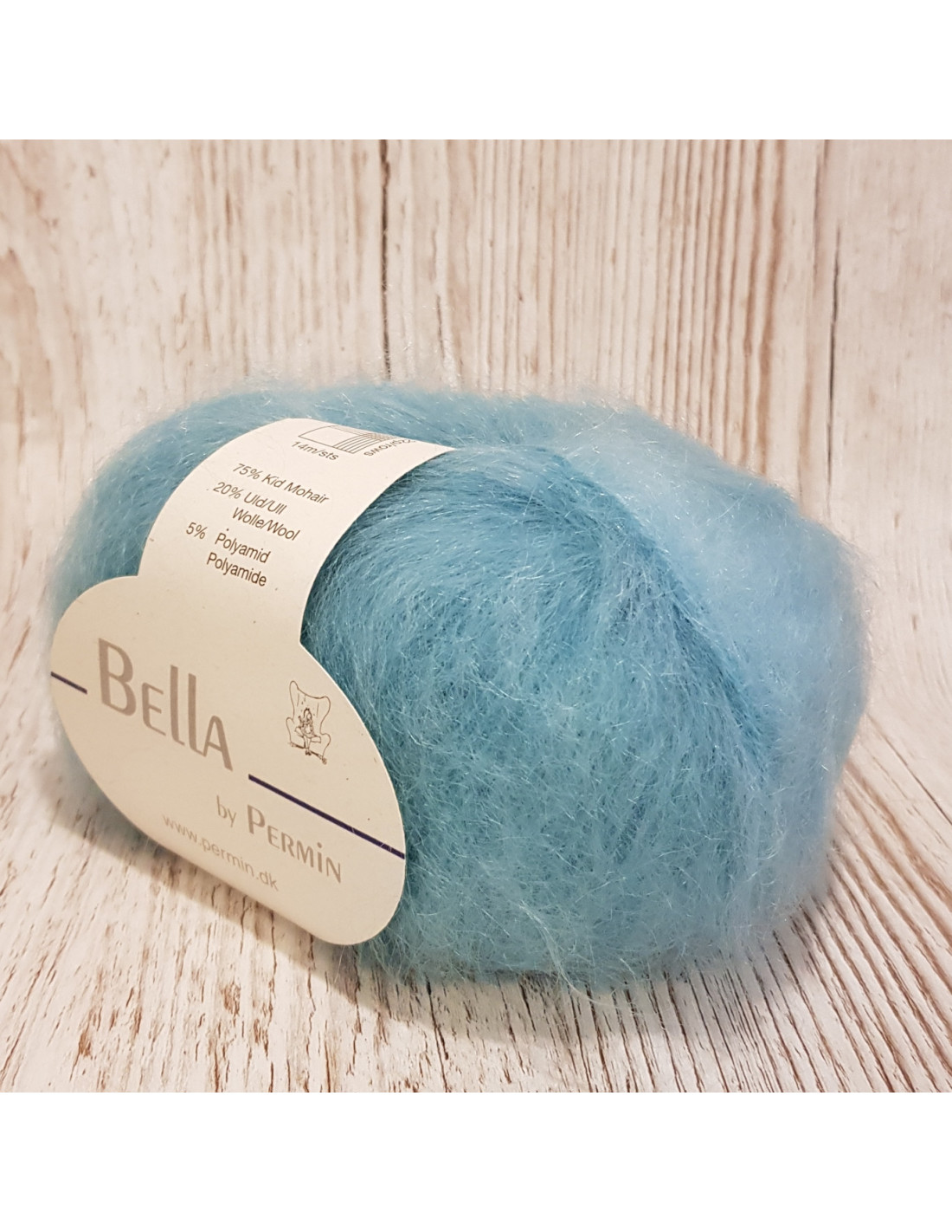 Bella från Permin är ett härligt mohair-garn av den mer klassiska sorten. I Bella stickar vi fluffiga och fina plagg som ger lite 80-talskänsla. Det finns mönster både i enkelt garn (stickor nr 6) eller dubbelt (stickor nr 10-12).