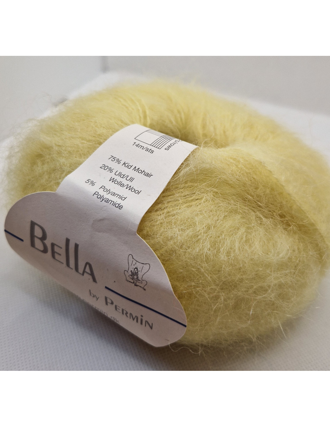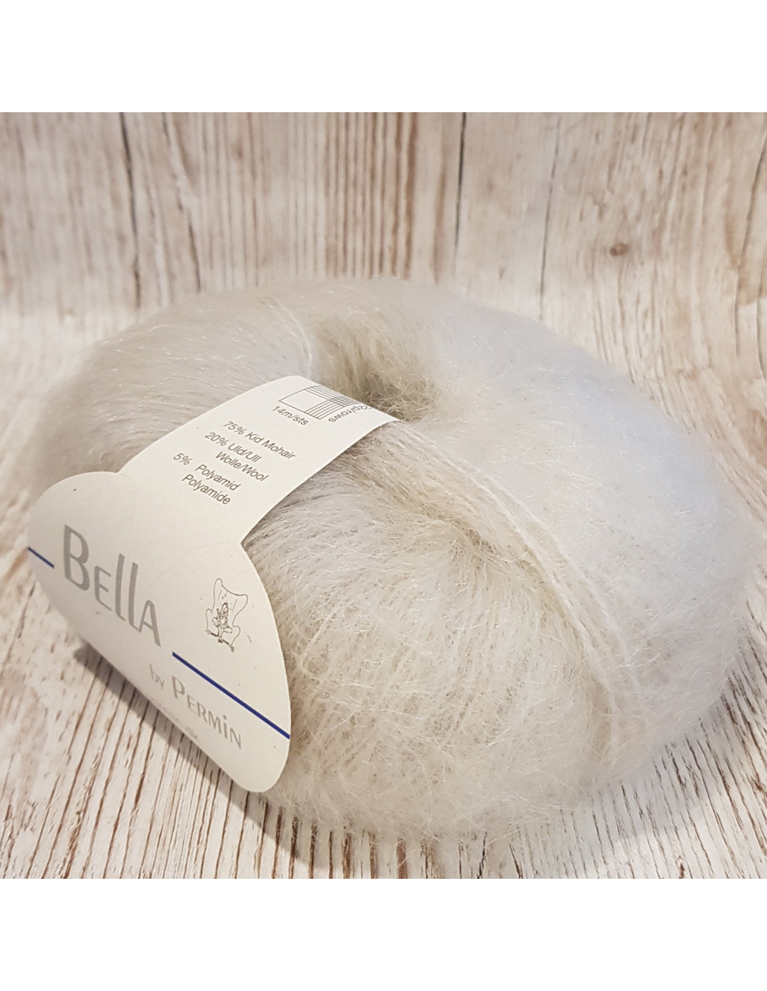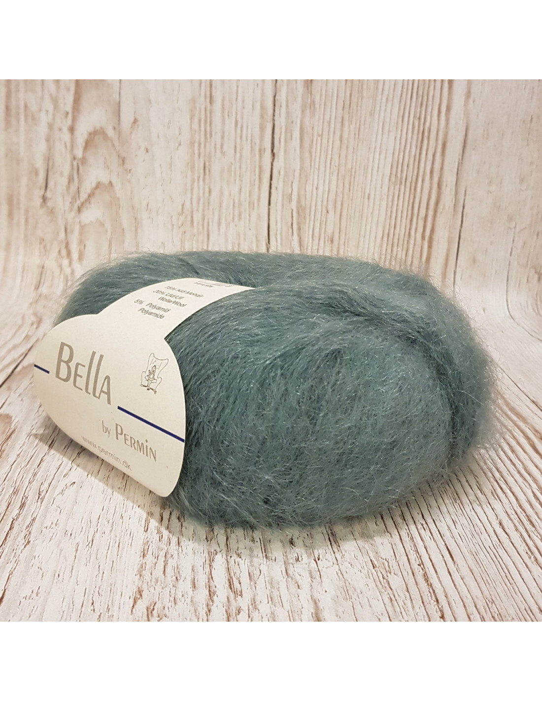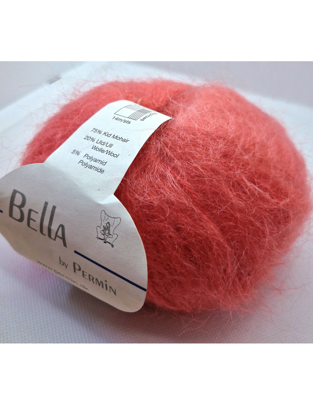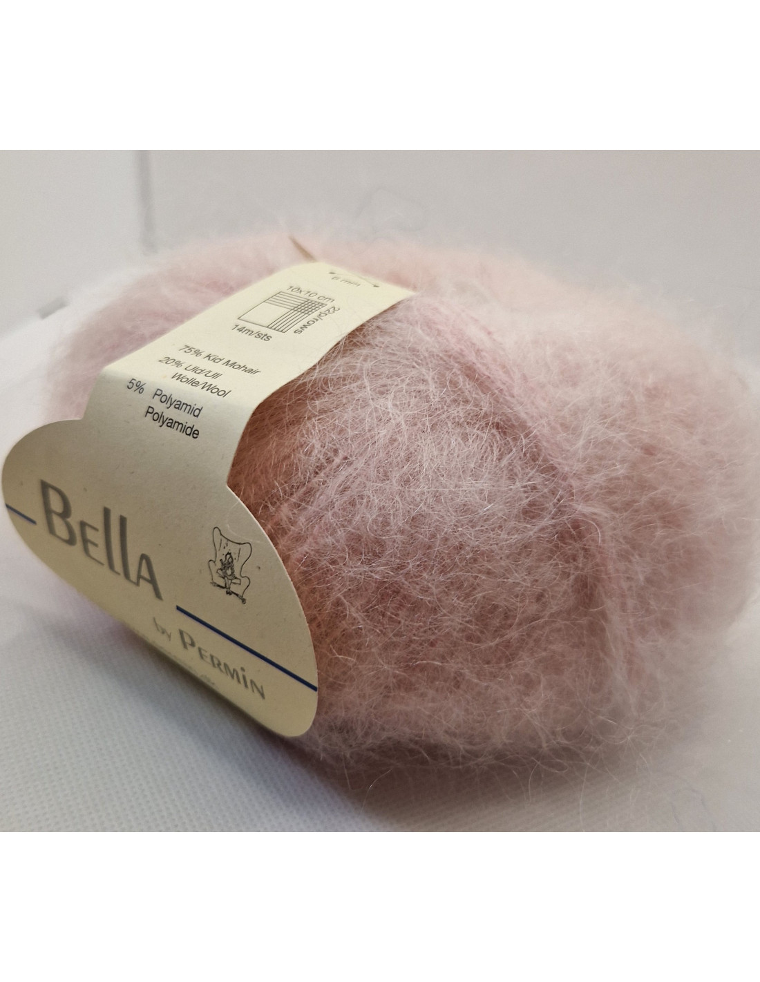 Bella från Permin är ett härligt mohair-garn av den mer klassiska sorten. I Bella stickar vi fluffiga och fina plagg som ger lite 80-talskänsla. Det finns mönster både i enkelt garn (stickor nr 6) eller dubbelt (stickor nr 10-12).