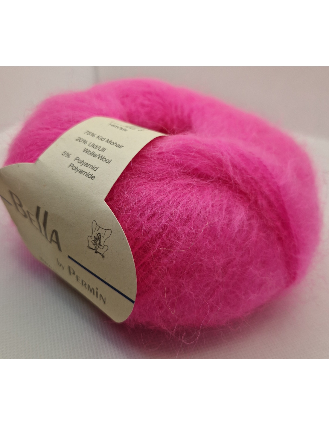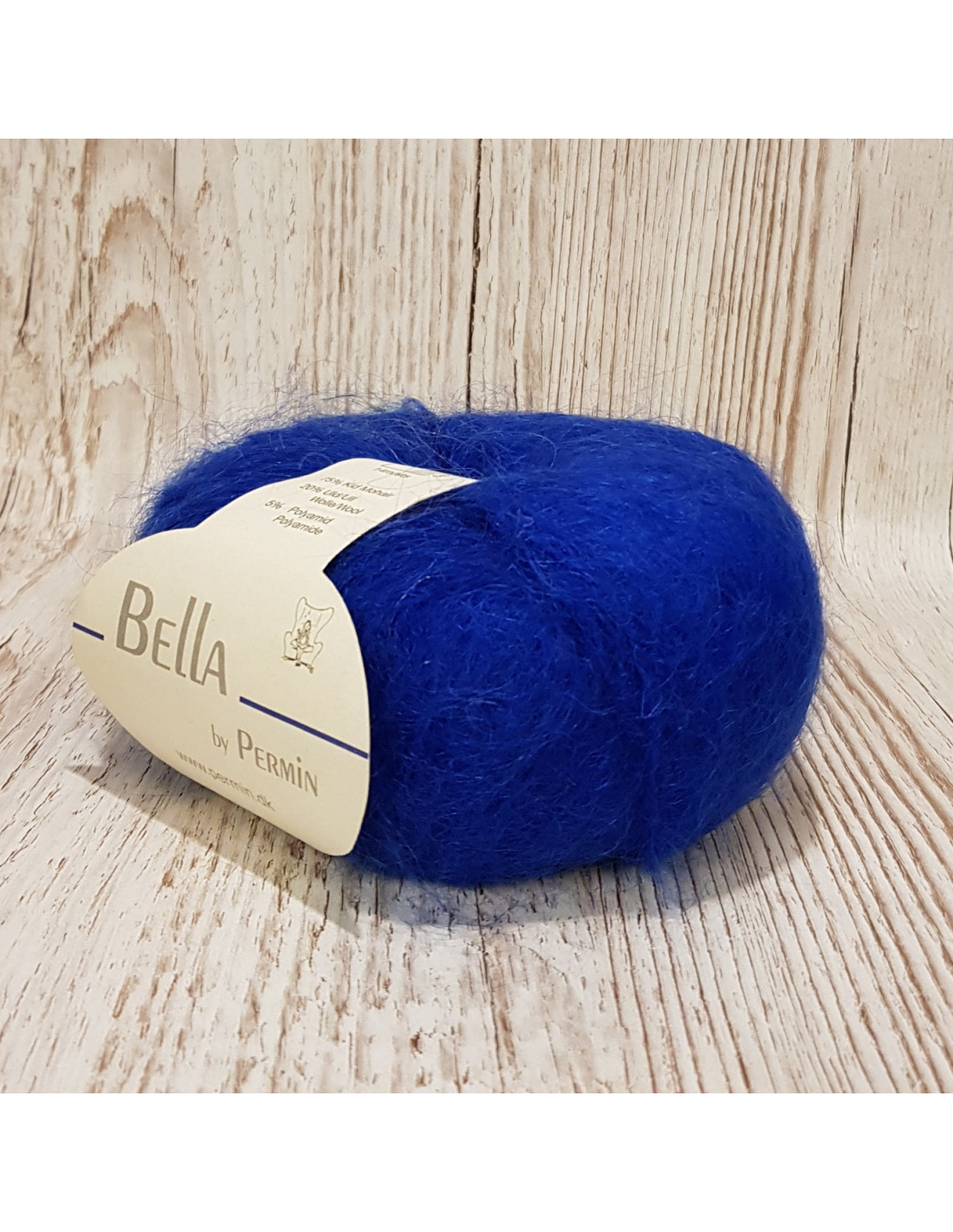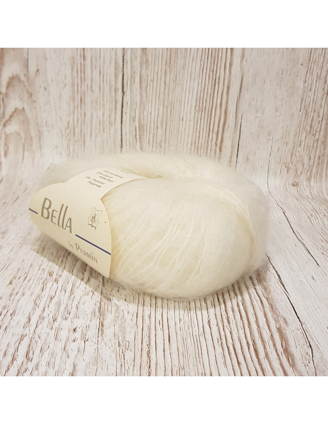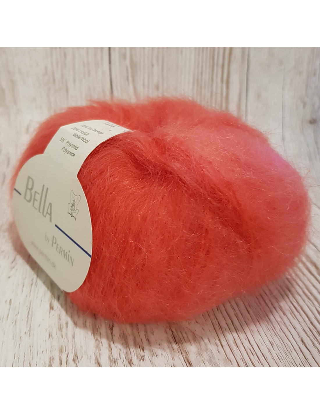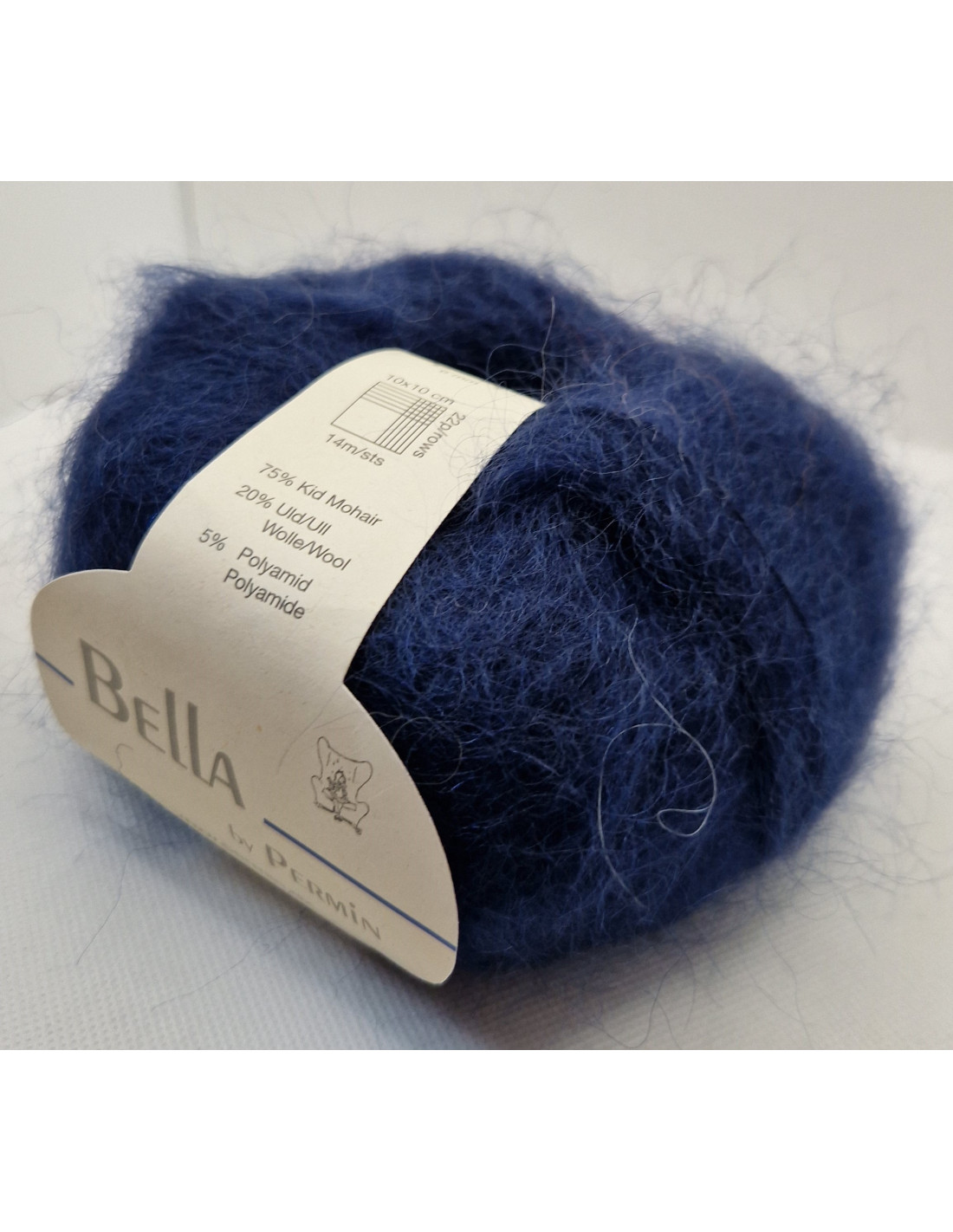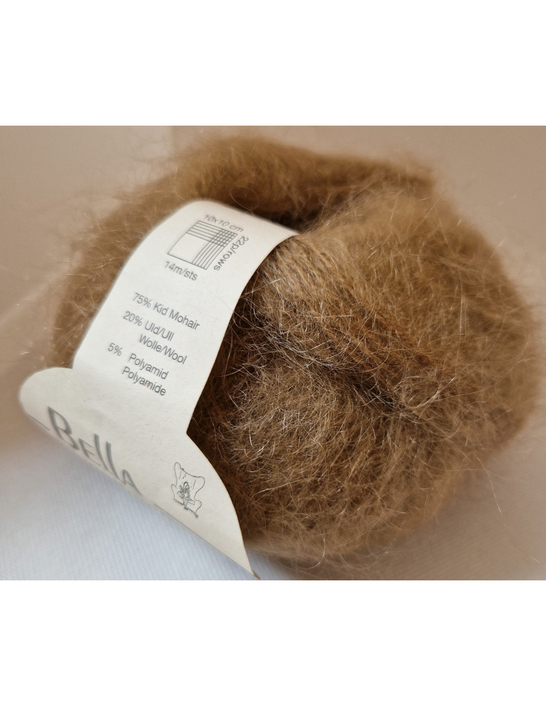 Bella från Permin är ett härligt mohair-garn av den mer klassiska sorten. I Bella stickar vi fluffiga och fina plagg som ger lite 80-talskänsla. Det finns mönster både i enkelt garn (stickor nr 6) eller dubbelt (stickor nr 10-12).