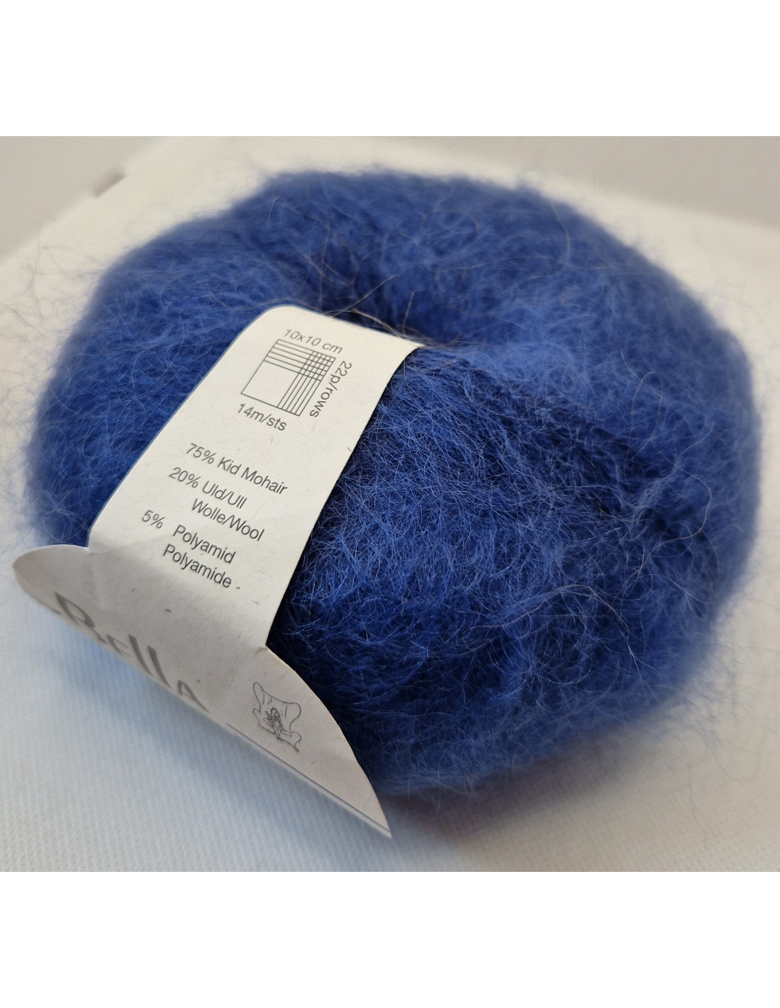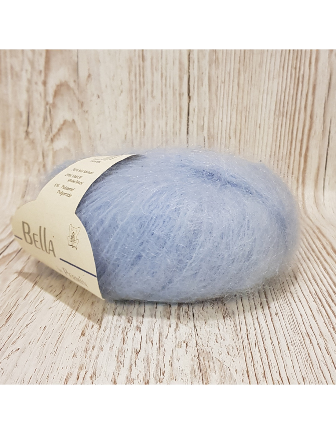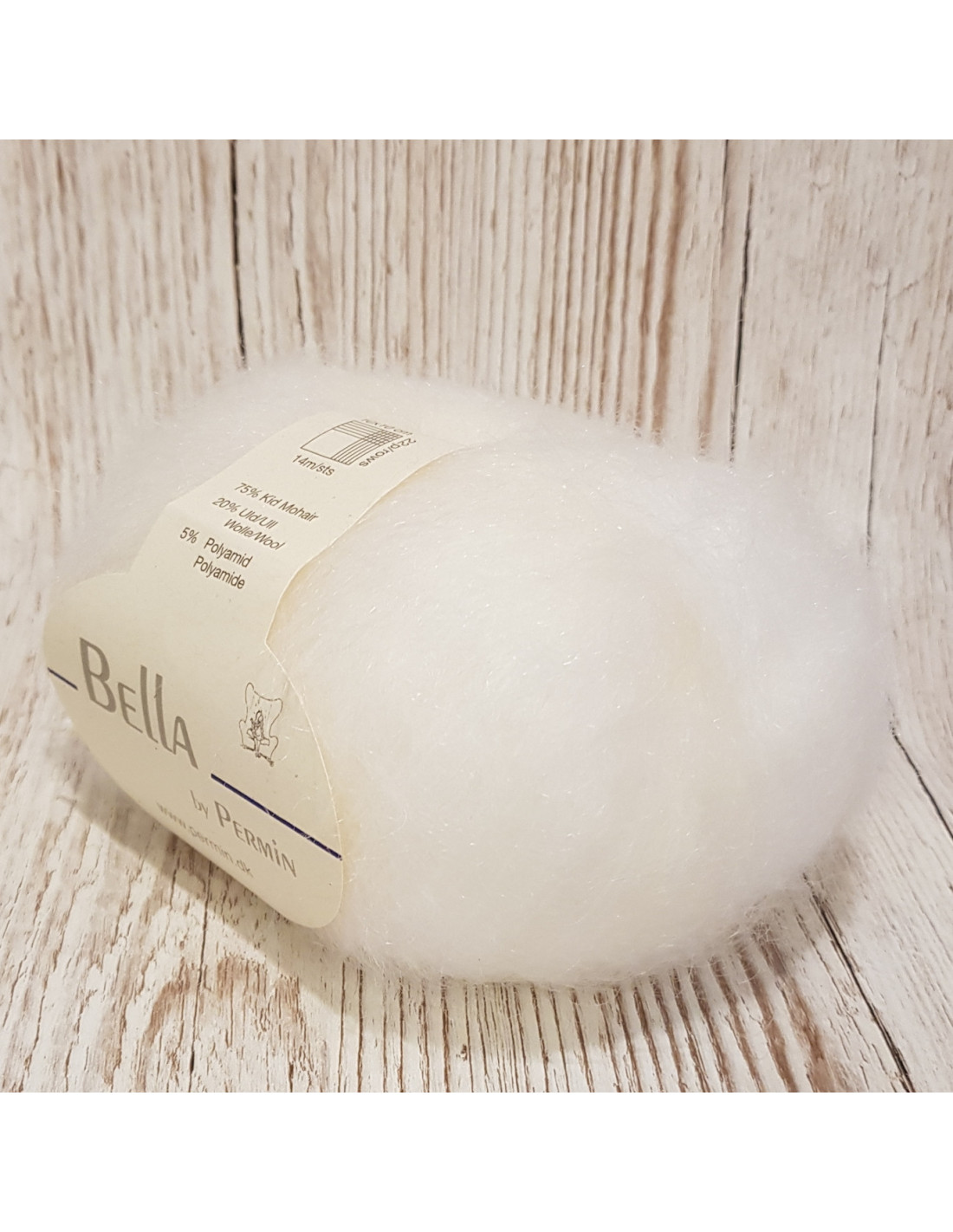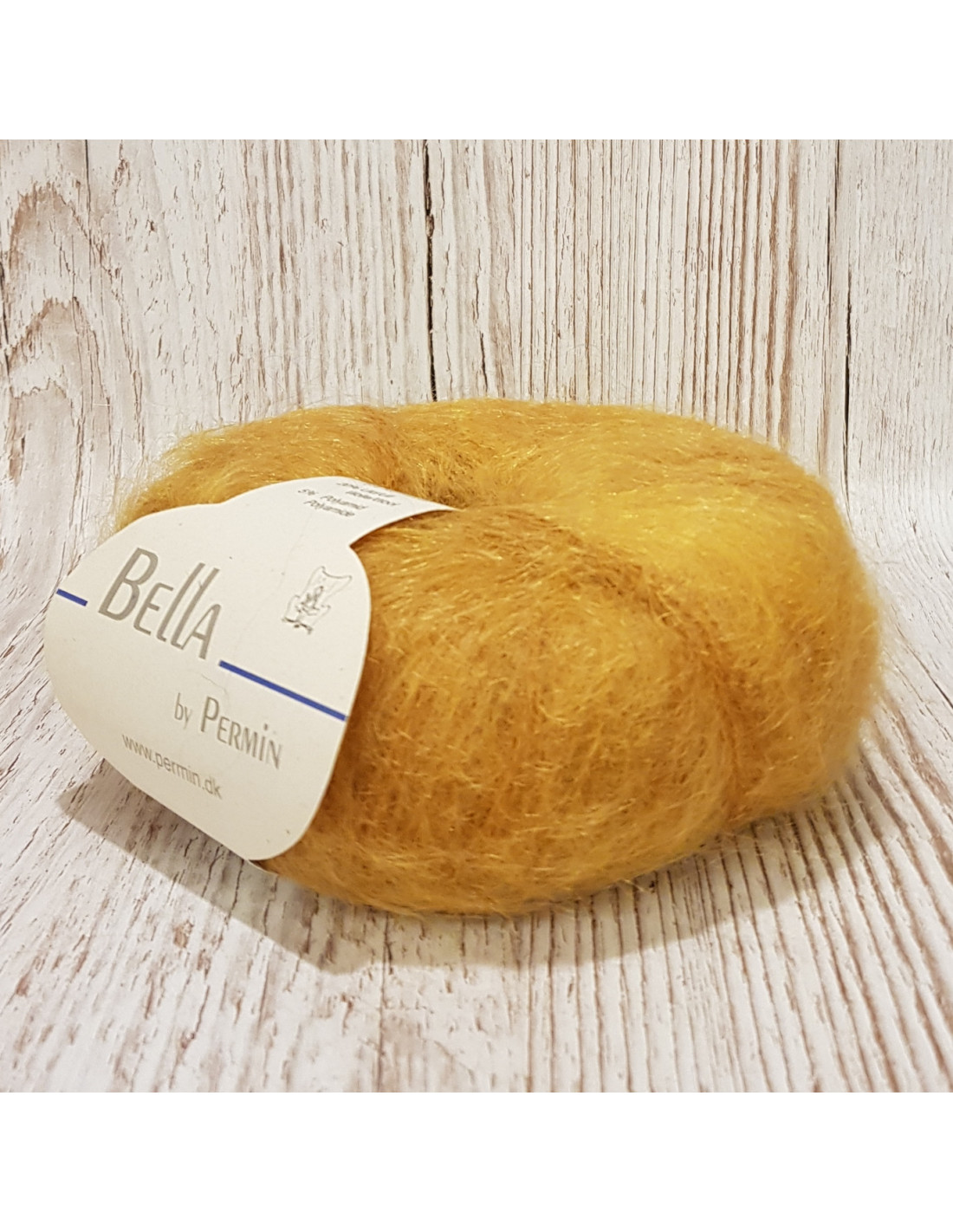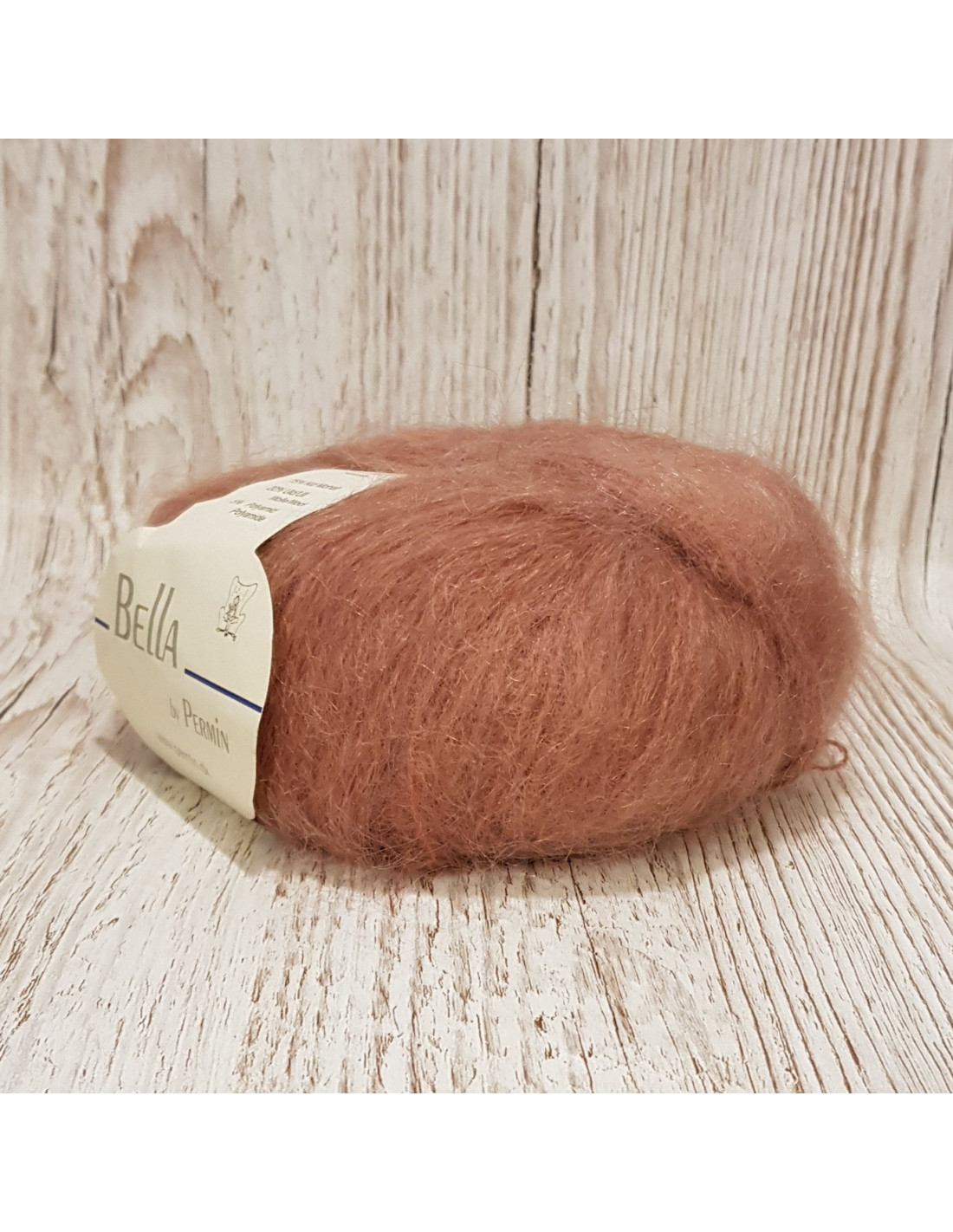 Bella från Permin är ett härligt mohair-garn av den mer klassiska sorten. I Bella stickar vi fluffiga och fina plagg som ger lite 80-talskänsla. Det finns mönster både i enkelt garn (stickor nr 6) eller dubbelt (stickor nr 10-12).