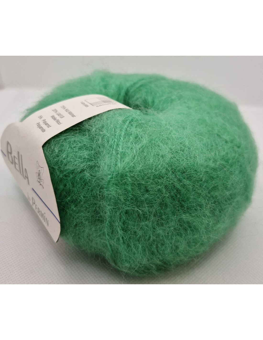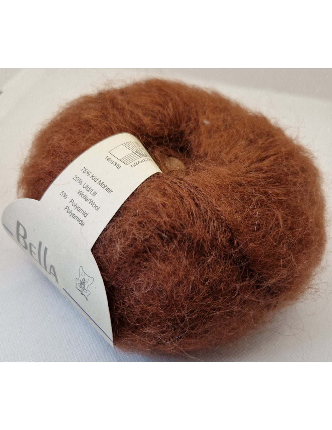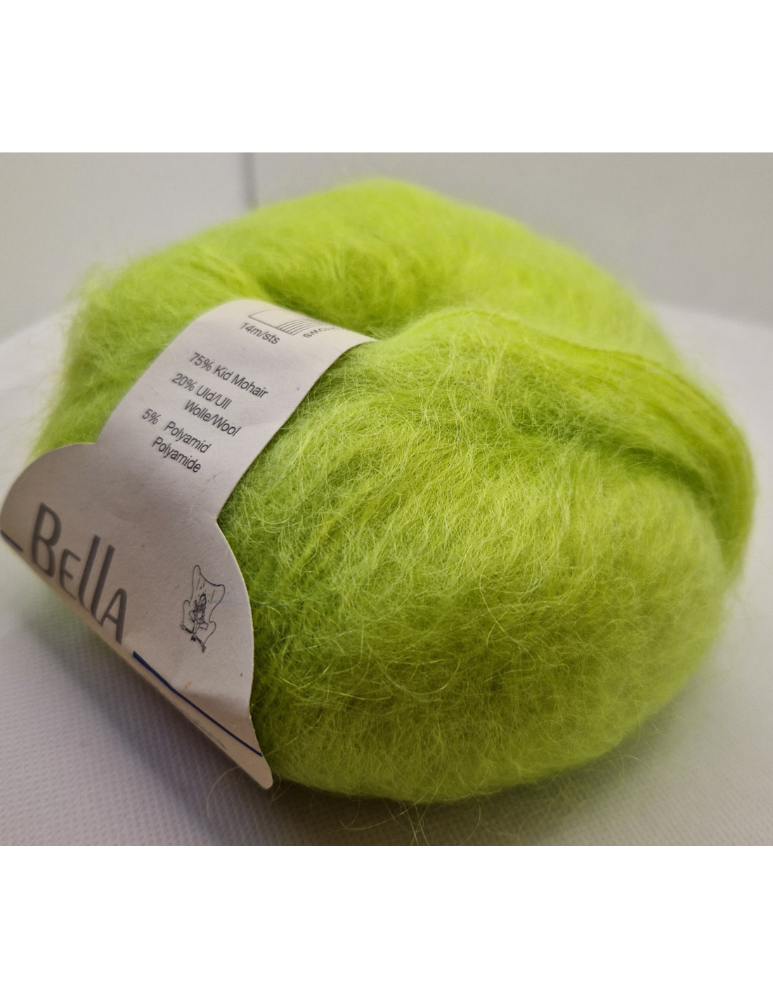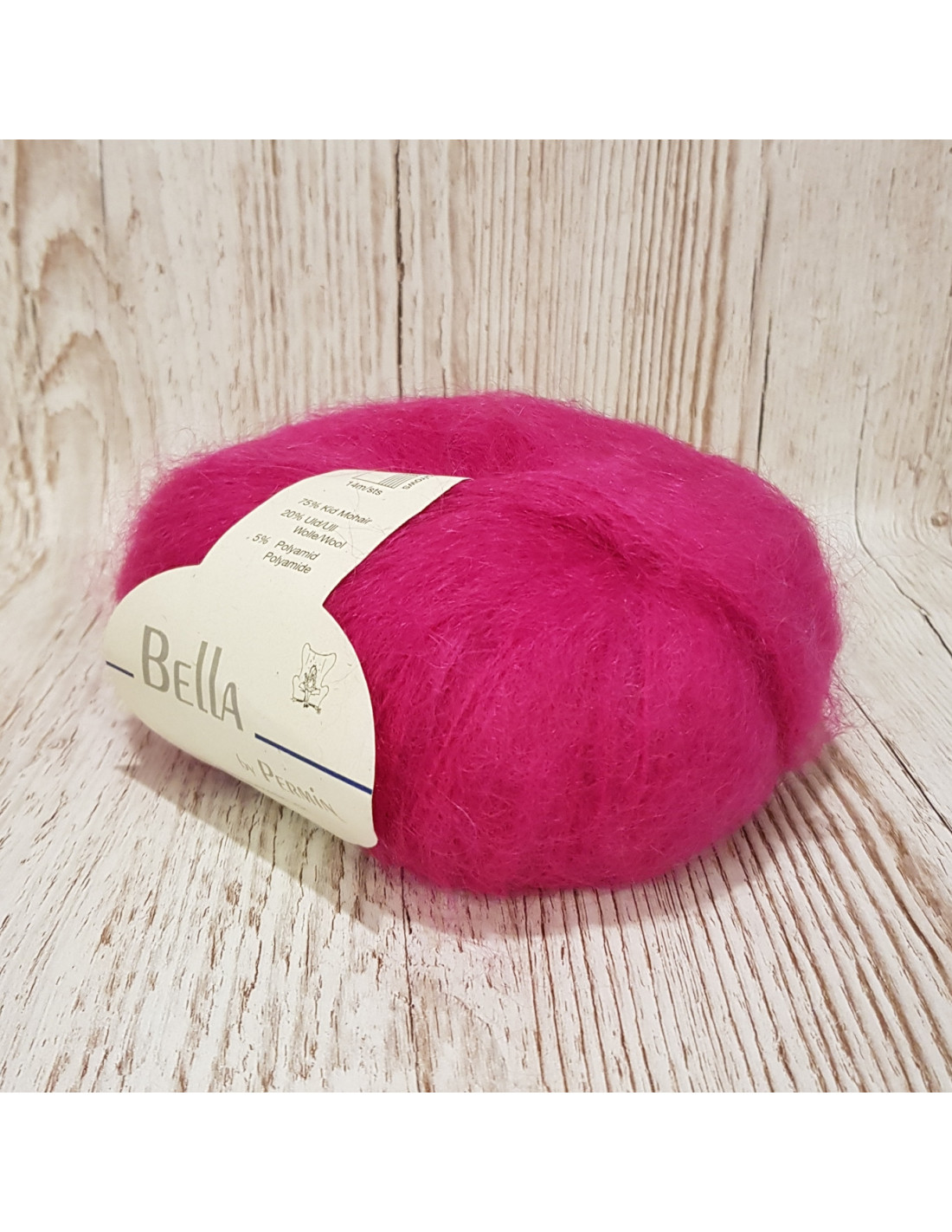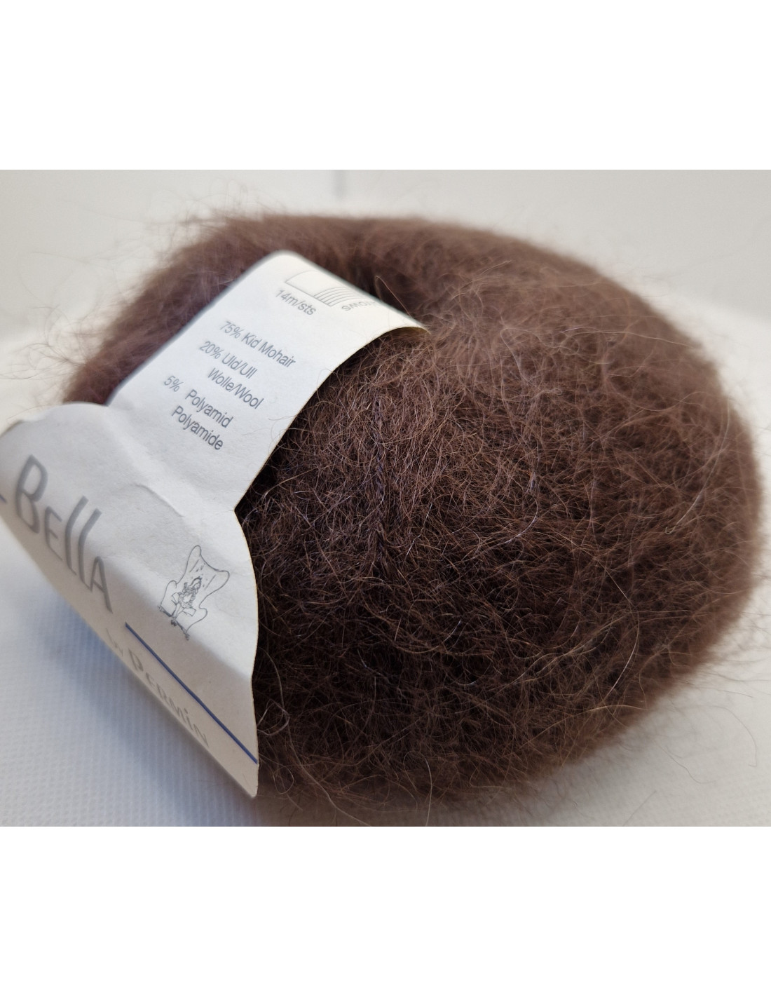 Bella från Permin är ett härligt mohair-garn av den mer klassiska sorten. I Bella stickar vi fluffiga och fina plagg som ger lite 80-talskänsla. Det finns mönster både i enkelt garn (stickor nr 6) eller dubbelt (stickor nr 10-12).
