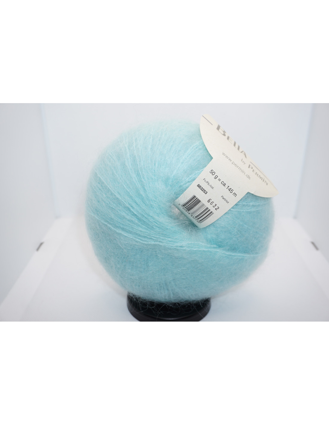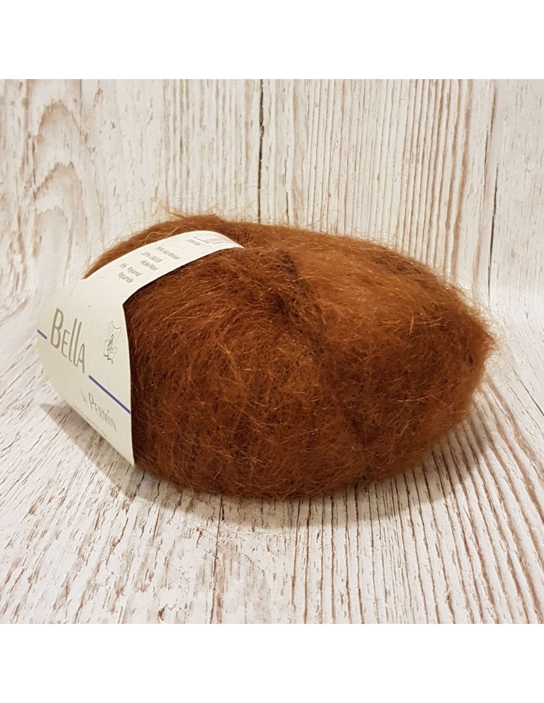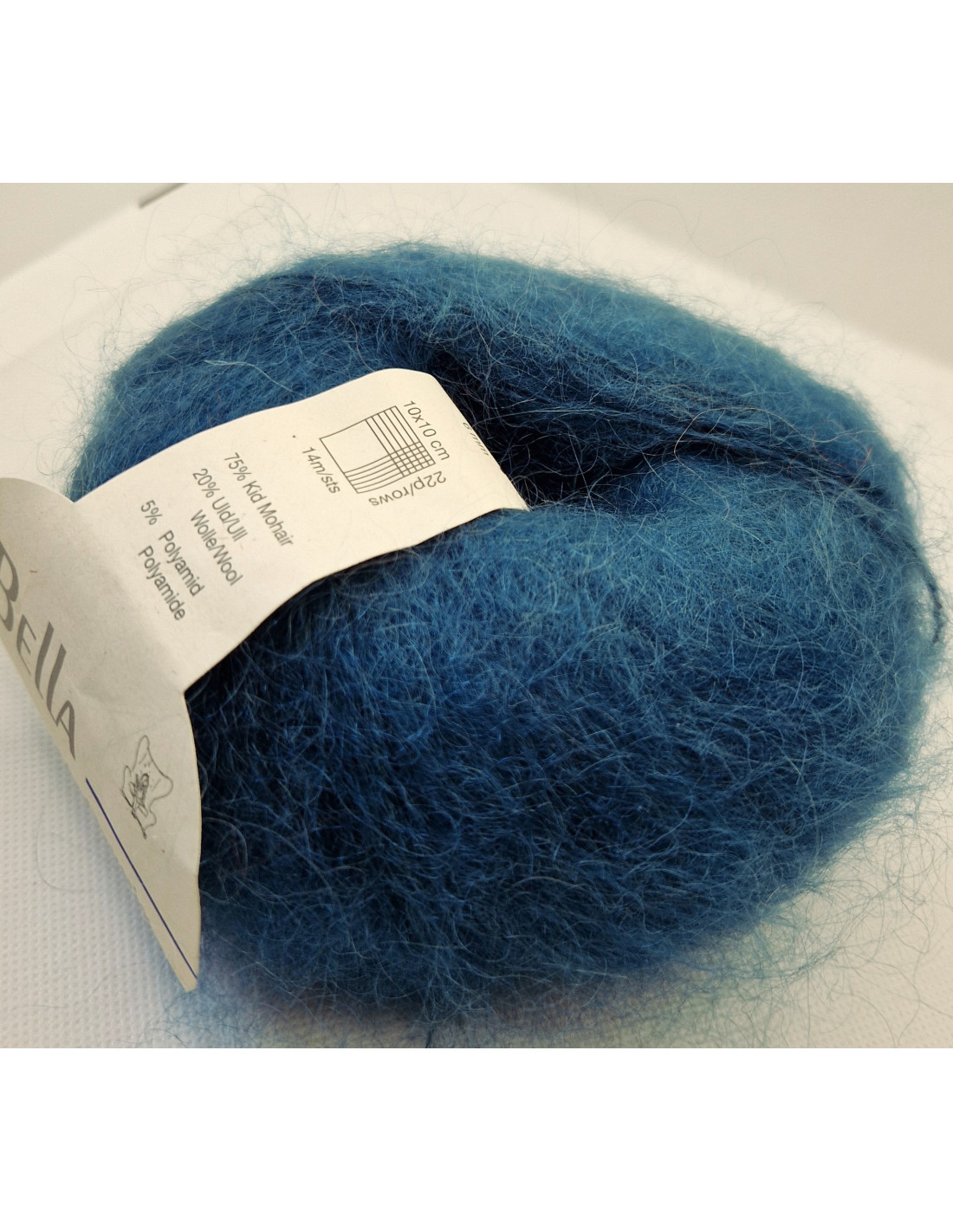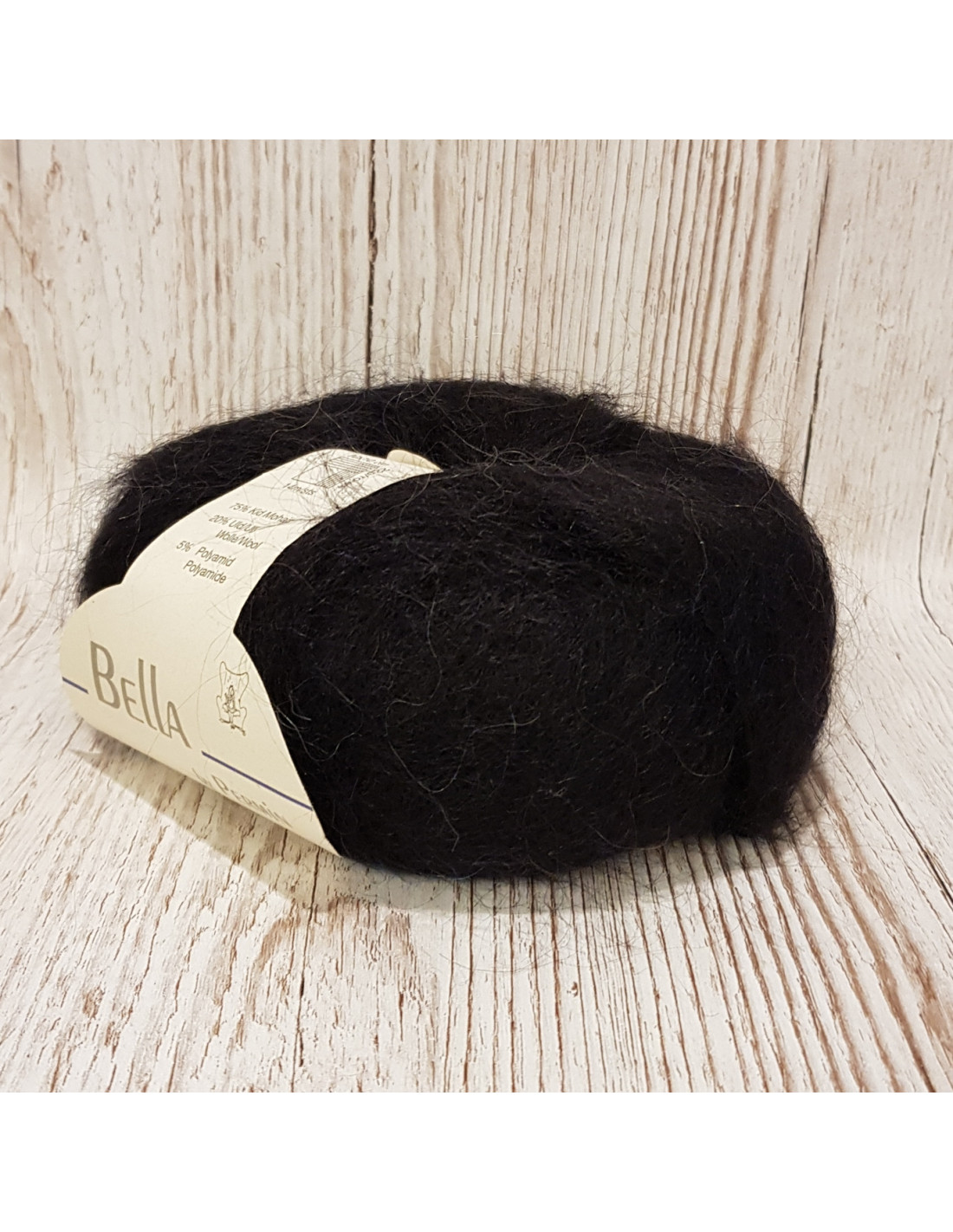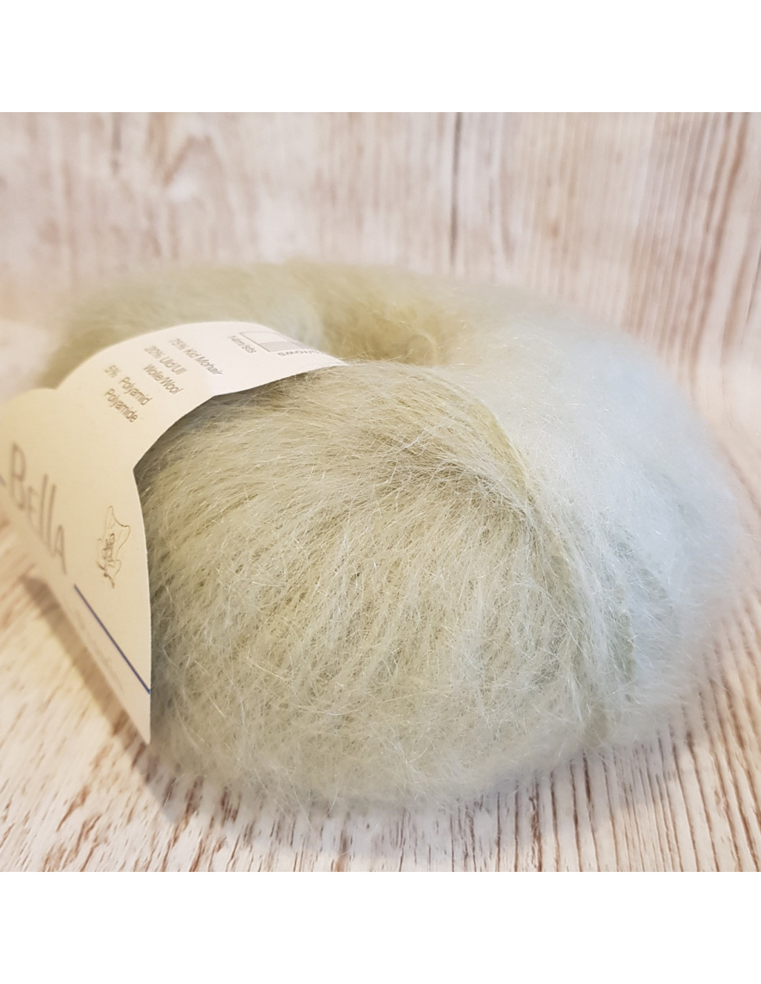 Bella från Permin är ett härligt mohair-garn av den mer klassiska sorten. I Bella stickar vi fluffiga och fina plagg som ger lite 80-talskänsla. Det finns mönster både i enkelt garn (stickor nr 6) eller dubbelt (stickor nr 10-12).