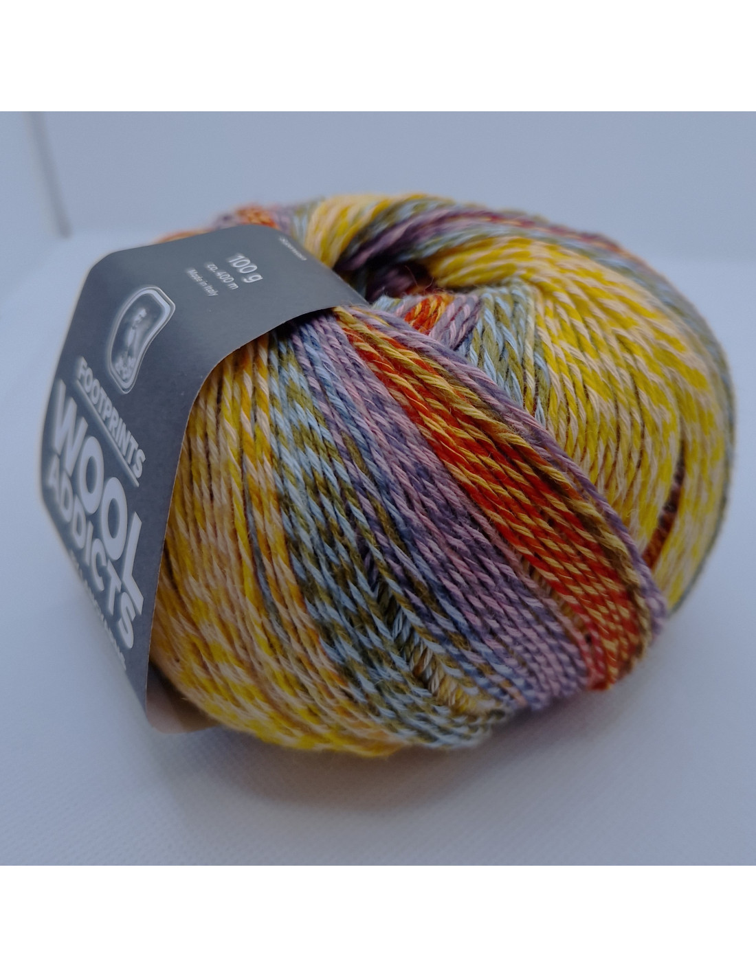 Footprints från Wool Addicts by Langyarns är ett härligt åretrunt-garn. Från början var det tänkt som ett sock-garn, men tack vare den sköna känslan och de vackra färgerna passar det alla typer av plagg. Vi stickar och virkar i det, som det är eller tillsammans med andra garner, enkelt eller dubbelt. Vi har t ex gjort Petit Knits Sunday Sweater med en tråd Footprints och en tråd Tynn Silk Mohair. Langyarns egna Linne i dubbelt garn har vi gjort en svensk översättning.