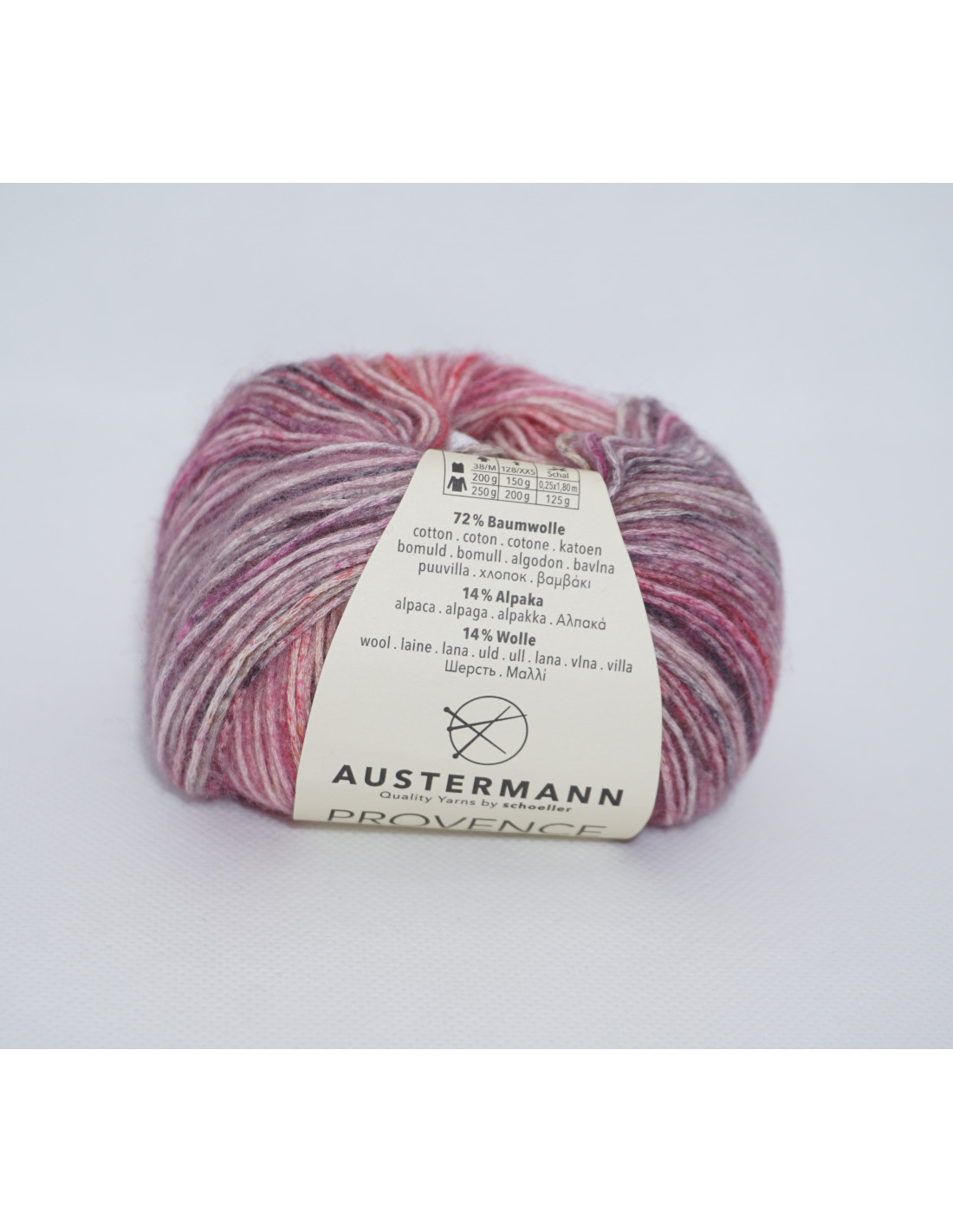 Provence Color är ett härligt lätt blandgarn i somriga färger. Det passar fint till både sjalar och tillbehör men också i större plagg. Till en tröja får man räkna med 8-10 nystan.