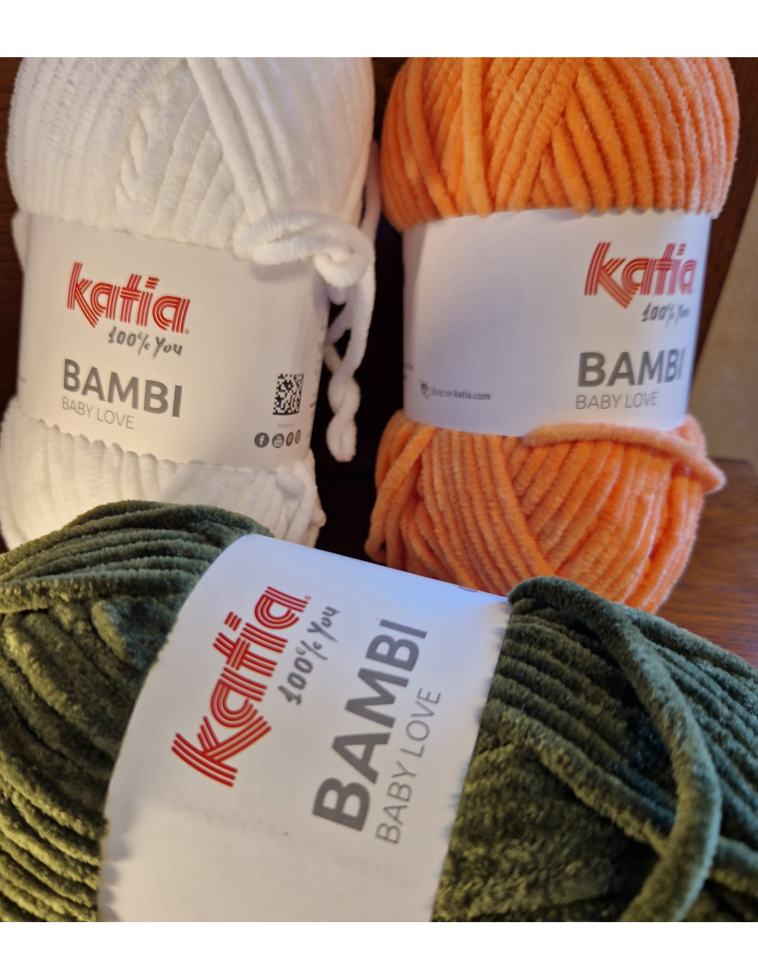 Bambi från Katia är ett mysigt sammetsgarn. Det passar utmärkt till gosedjur, kuddar men också till tröjor, halsdukar och andra plagg.